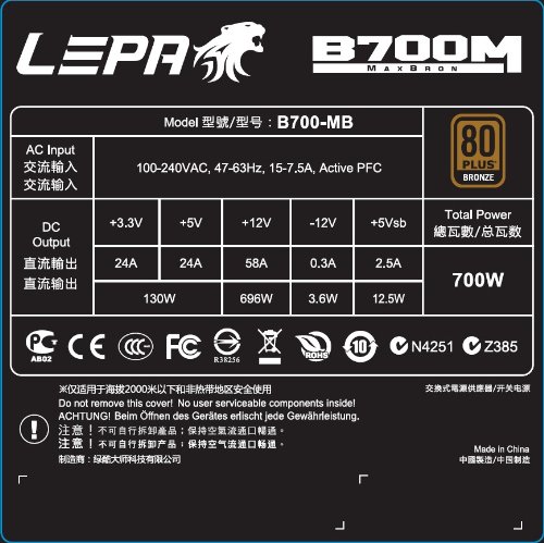 Certificare | 80+ Bronze |