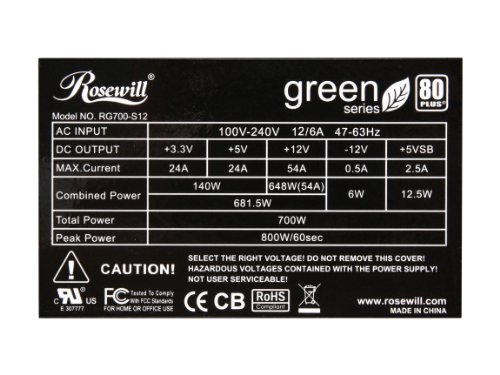 Rosewill Green 700 W 80+ Bronze Certified ATX Power Supply